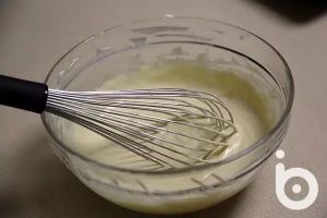 糖水跟蛋黄混合了,搅拌均匀,放凉备用