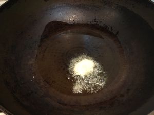 油热后将蒜和洋葱煸炒出香味