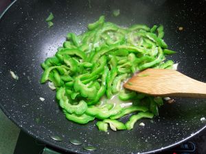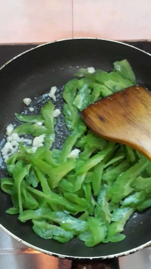 下苦瓜,翻炒几下,倒点水,继续翻炒