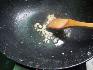 热锅下油和蒜头爆香加苦瓜翻炒