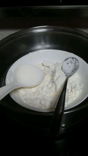 现在开始逐渐添加牛奶或者水了,直到用筷子搅拌起来比较粘稠就可以了