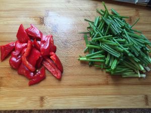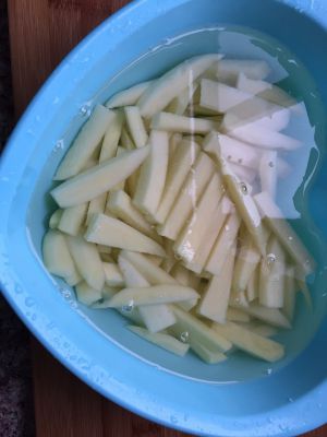 腌鱼的时候可以准备菜了,放自己喜欢吃的,我家就这么多菜了所以就三样,魔芋豆腐切条
