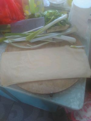 干豆腐买鸡用水焯一下,然后如图展开