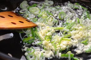 炒锅中倒入油,烧至油温三四成热时,放入葱姜和八角爆香