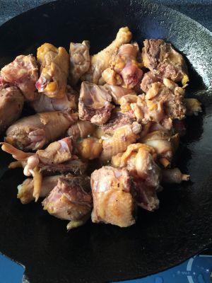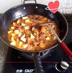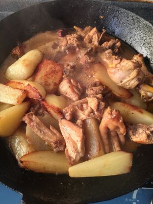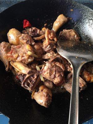 待鸡肉五成熟时倒入土豆和适量老抽继续翻炒(若用的是土鸡,此步骤中的土豆可以后放以免过于软烂)。