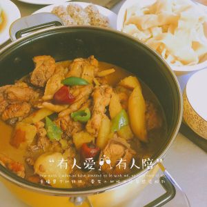 加入少许开水,加入土豆块,开水没过鸡块土豆