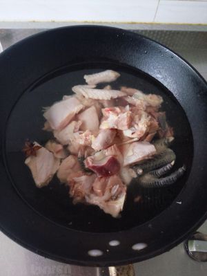 鸡肉凉水洗净,加入锅中焯水去除浮沫,锅中加八角。