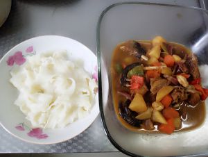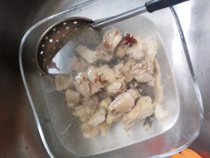 1.土豆洗干净去皮,同理,整鸡剁块后,再开水中煮一下