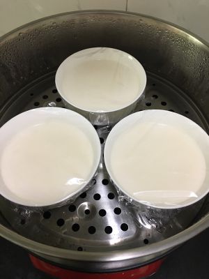盖好保鲜膜,上锅蒸15分钟左右,再关火焖5分钟。