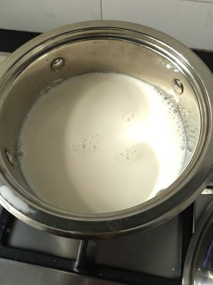 水煮沸后牛奶盖上保鲜膜中火10分钟