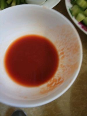 番茄酱,鸡精,生抽,醋,糖,搅拌一起,上锅抄粘稠,