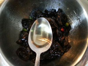 准备一丢丢黑木耳,用水泡开,我昨天晚上泡的,第二天做