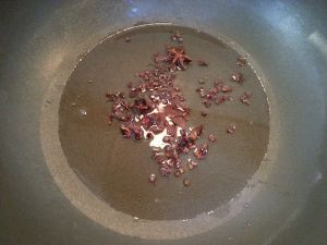 锅底少许油,冷油放入花椒和大料。小火爆香。做一些花椒油。