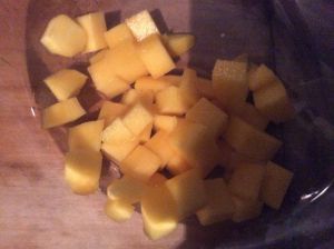 先将芒果剥皮,留4/1的果肉切成小粒备用,其余的果肉用料理机打碎,然后将奶油倒进去拌匀,吉利丁片用冰水浸泡软化。