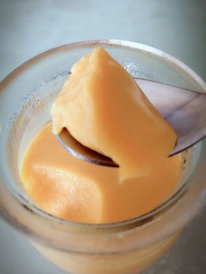 待2、3个小时后即可食用(我是早上做,下午吃的),嫩滑爽口的芒果布丁就大功告成了!