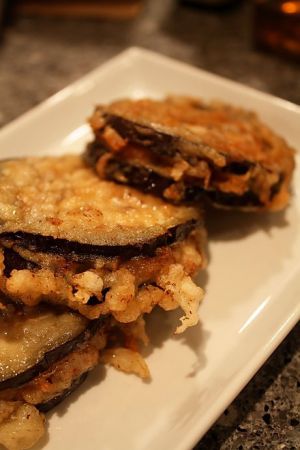 茄子裹上面糊后,小火炸,直到金黄色后捞出