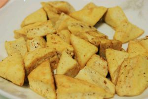 锅底放油,小火将豆腐煎制两面金黄,捞出,控油