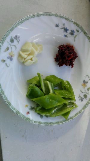 平底锅加适量油,放入生姜 葱 辣椒 豆豉酱翻炒片刻