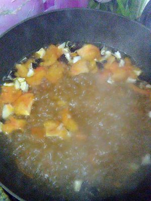 下锅煮开捞出,剥皮,切丁。