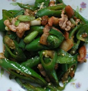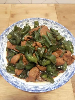 先把肥肉煎成两面煎黄,出锅。 再放入腌好的瘦肉翻炒几下,马上出锅。 然后就炒青椒,(家里有蒜籽的可以加入 蒜籽)青椒快炒熟的时候加入之前炒好的肉,翻炒翻炒……就可以出锅了。肉在锅里别炒太久哦炒老了就不好吃了。