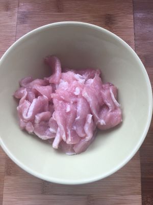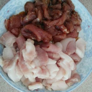切好的猪肉,肥瘦分开,瘦肉加点盐加入生抽腌一会