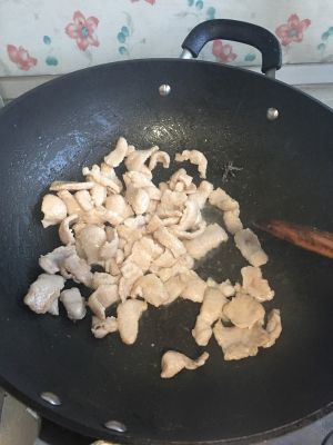 锅中留底油,放入大料爆香后放入肉片,做这道菜我不喜欢抓淀粉