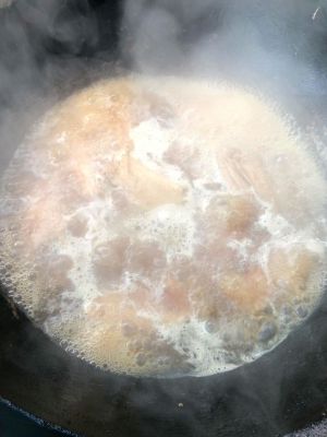 翻炒过后,倒入可乐,盖上锅盖,待可乐烧成浓汁。