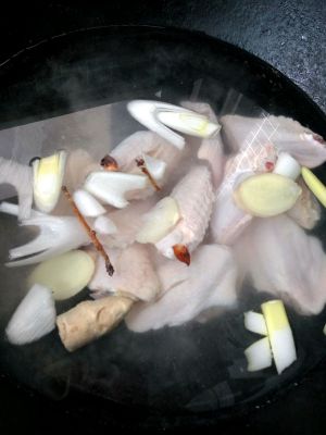 鸡翅背部滑刀,加入料酒,葱姜蒜八角,盐,入味30分钟