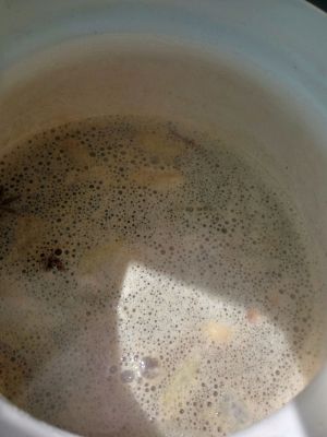 煮鸡翅的底汤放入砂锅,放可乐,生抽,老抽,再放入鸡翅