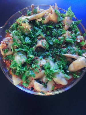 把第六步拌好的油料倒入斩切好的鸡上,洒上花生米末,香菜末,可以开动咯!愉快的小聚会☺️☺️☺️
