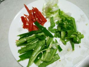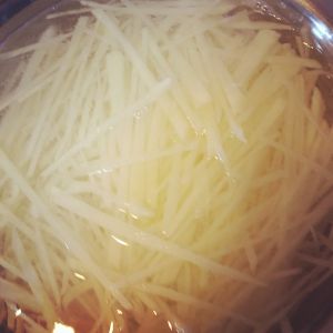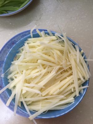 土豆大小根据自己需要挑选,切丝,过水泡一会儿。