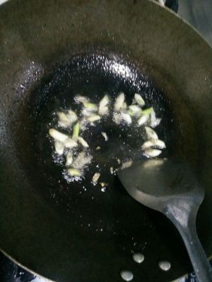 6,锅里放油,油热后放入大蒜和辣椒爆香。