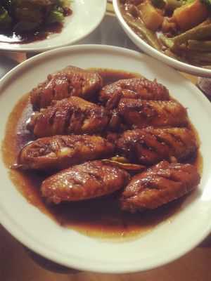 最后出锅时先夹起鸡翅摆盘,这时汤汁如果还比较稀但鸡翅已经炖好了就可以在捞出鸡翅后再收汁,最后浇上去就会显得很高大上啦!