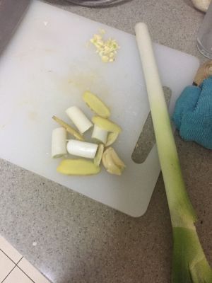 期间切好葱姜蒜备用,大块一点,可以在炖好之后成块挑掉