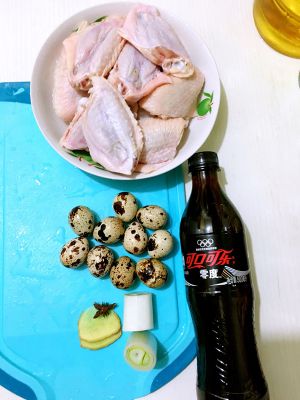 再放入各种料,可乐要默过鸡翅,大火烧开后转小火炖到汤汁粘稠就行了,鹌鹑蛋我是倒入可乐以后放进去的没有拍上。