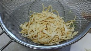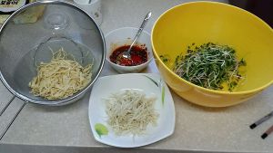 1张豆腐皮泡好,切丝焯水