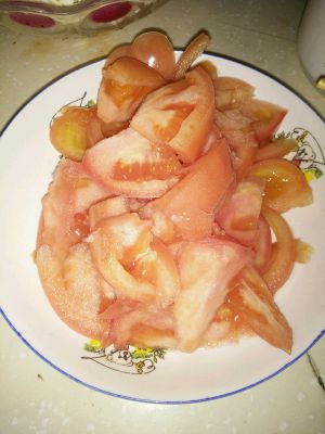 西红柿切好,我切的有点大块了,大家可以切的小点或许更好。