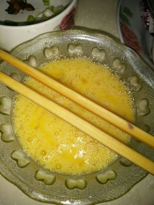 首先鸡蛋三枚,用筷子使劲打开,蛋液中放少许盐,入味以及去腥哦。