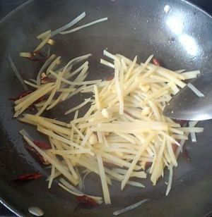 放入土豆丝,大火三两分钟即可。