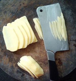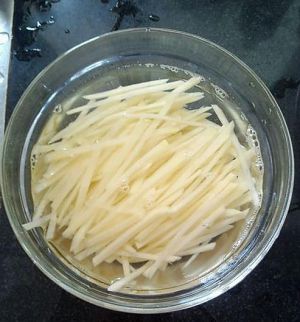 土豆去皮,开始切成细丝。