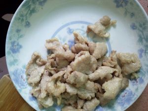 将瘦肉切薄片,加入盐、鸡精、香油、花椒油、酱油、生粉、胡椒粉抹匀腌制几分钟。(作料注意用量)