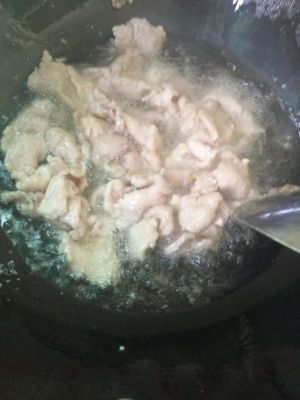 锅内放入食用油,待油热,加入调制好的,肉片,抄熟!