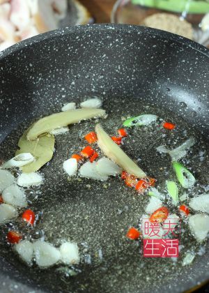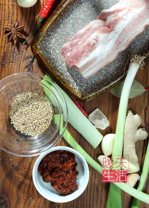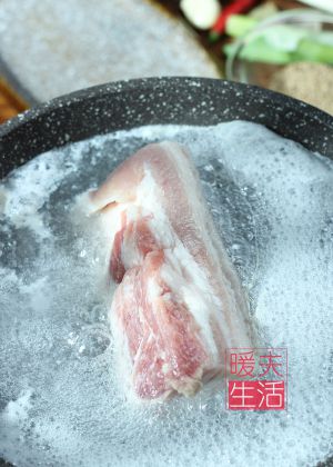 过水后的五花肉放料酒、葱、姜、蒜、大料、花椒炖煮至筷子穿透、放凉切薄片( ̄∇ ̄)