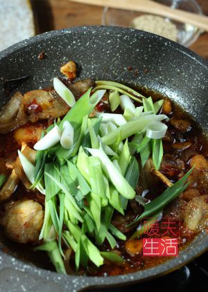 加入豆瓣酱,白糖,最后加入酱油,盐,鸡精。翻炒一会儿起锅