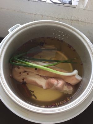 将料理好的五花肉,加适量的食盐,大火水煮至水开,续煮10分钟后,中火继续水煮20分钟!起锅!