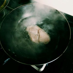 将肉块煮至用筷子试插,无血水渗出状捞出(试肉大小,约15分钟);