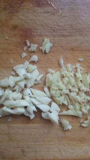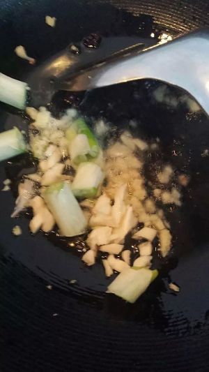 蒜切成末备用,葱切切段(一会儿分成两次下锅)