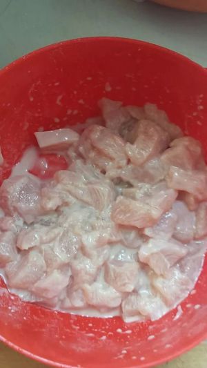 鸡腿肉切小块用蛋清生粉抓匀腌制半小时