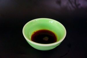开始调料汁儿:取一个小碗,倒入清汤,料酒,老抽,糖,少许香醋,搅拌均匀,待用