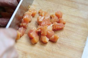 鸡胸肉切块(我这里图省事,其实用去骨大腿肉,口感更好)